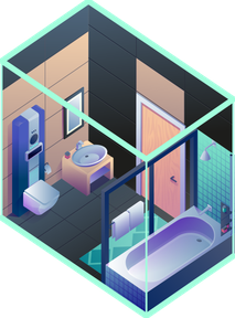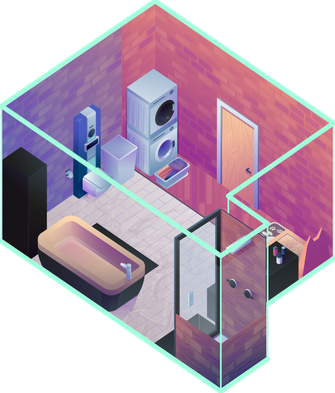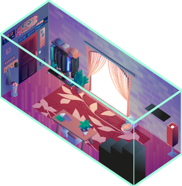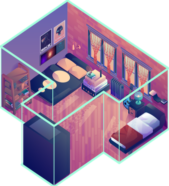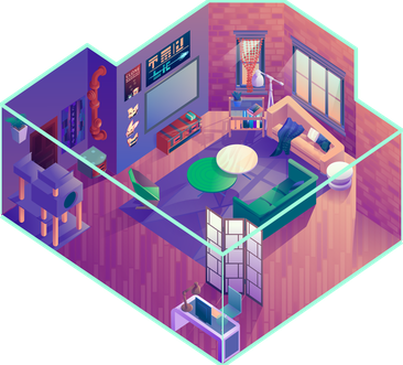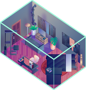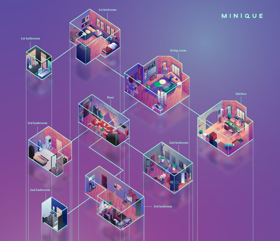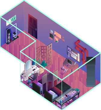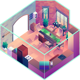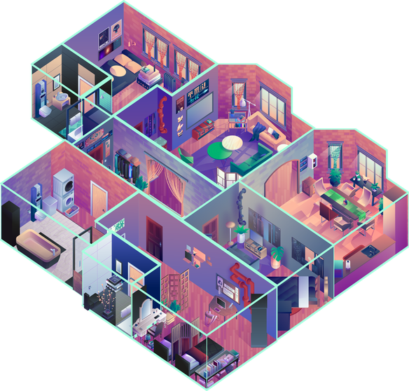 Ein privates Projekt zu einer Wohngemeinschaft, dargestellt in isometrischer Perspektive. Illustriert in Vektor.